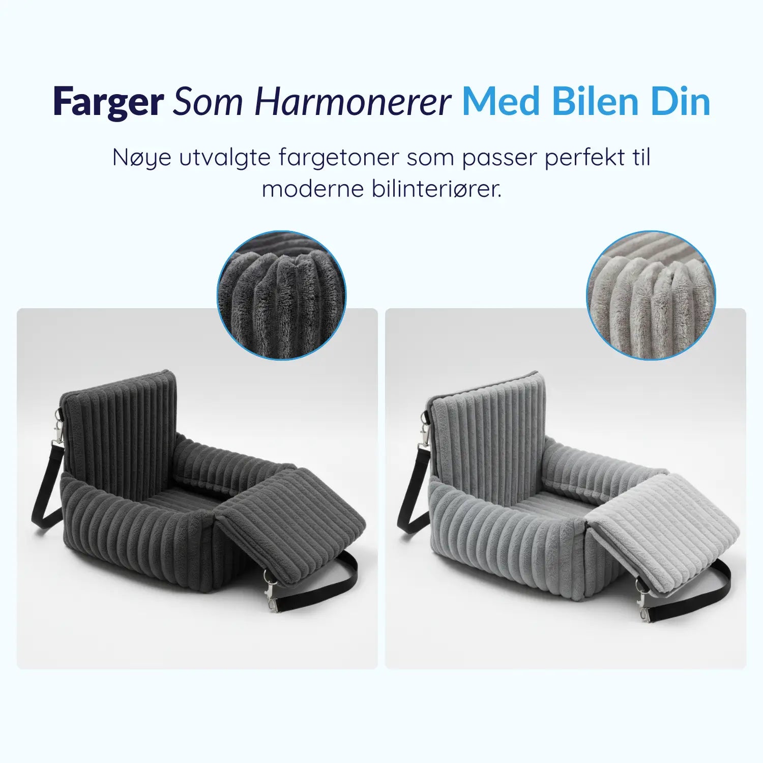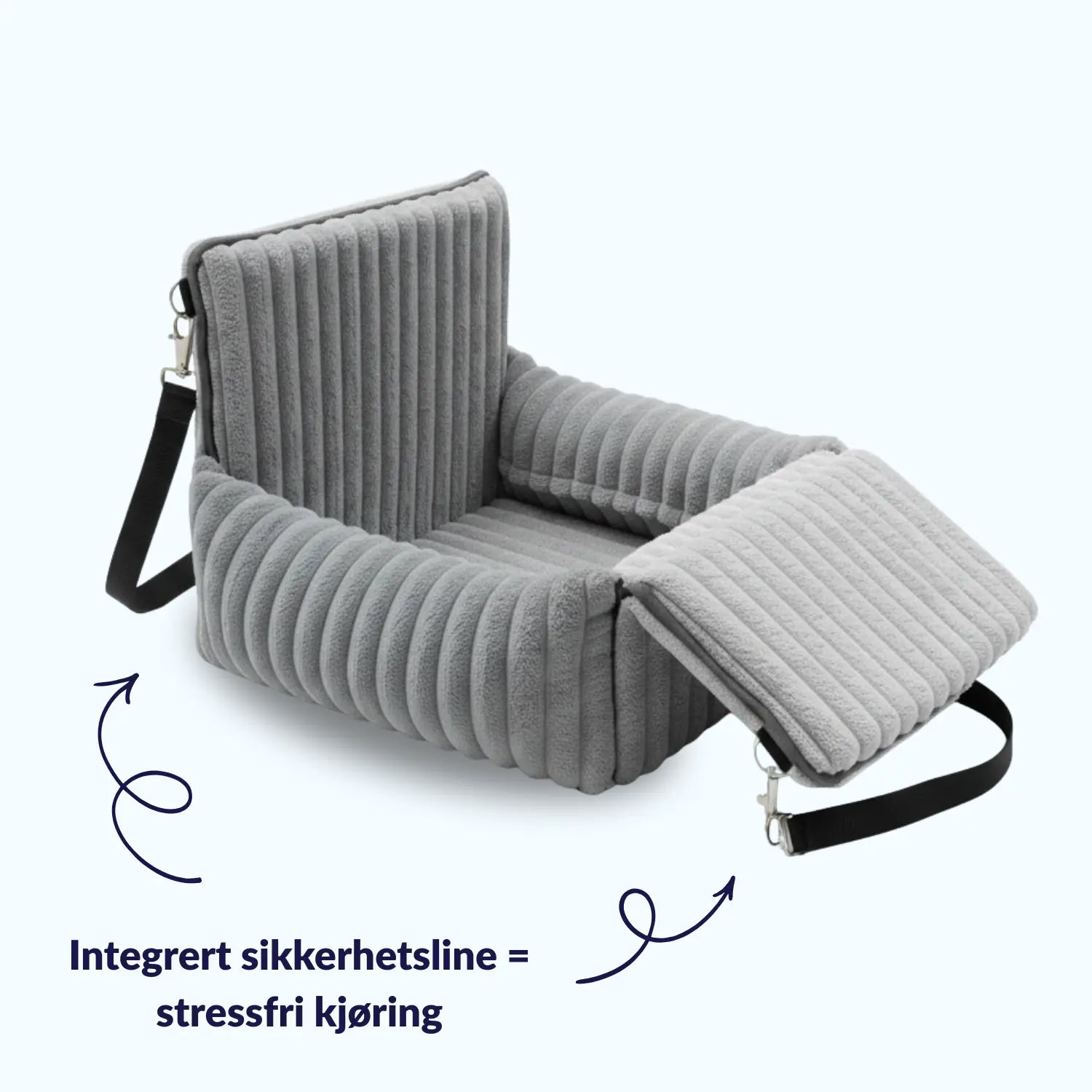 Dette supermyke bilsetet gir hunden din sitt eget lille fristed i bilen, demper reisestress og holder hunden trygt på plass. Den forhøyde utformingen gjør at de kan nyte utsikten, mens de polstrede sidene støtter kroppen gjennom svinger, bremsinger og dumpete veier.